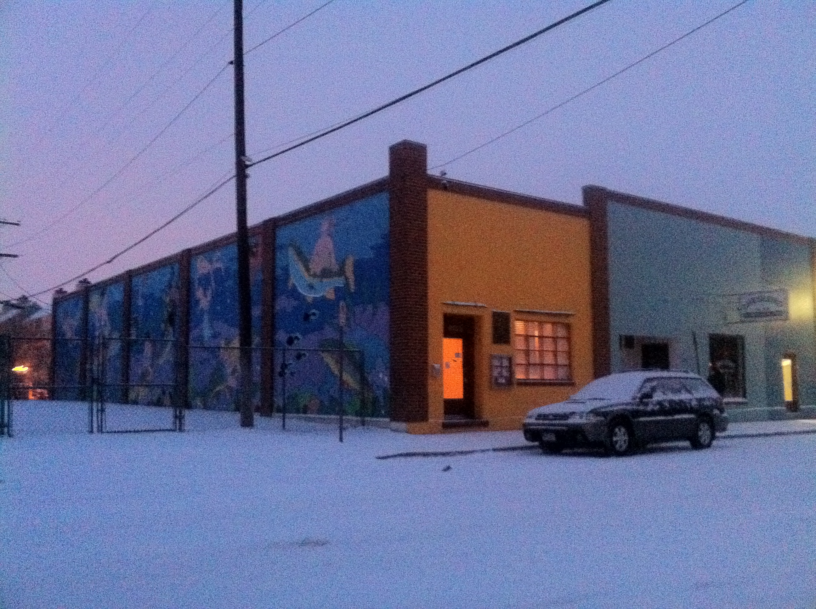 With all the snow today, this would have been one of those nights the old me would have said the conditions weren’t so great out for going to yoga and were much better for staying in and opening a bottle of wine. But look how warm & inviting the Yoga Workshop studio looked as I walked up and it was nice and toasty inside.