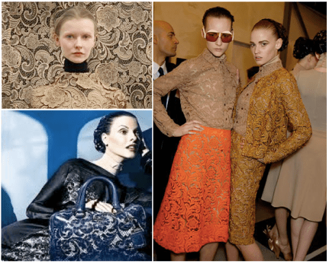 When you think of lace it often conjures images of little old lady doilies, rigid Victorian collars or formal wedding gowns. In recent years, it’s been making a comeback on the runways and one collection I particularly loved was Miuccia Prada’s Fall 2008 ready-to-wear collection of handmade Swiss lace garments. It gave lace a powerful, modern edginess and I think we’ve seen the results in any store we walk into nowadays; there’s a renewed interest in lace in everyday wear.