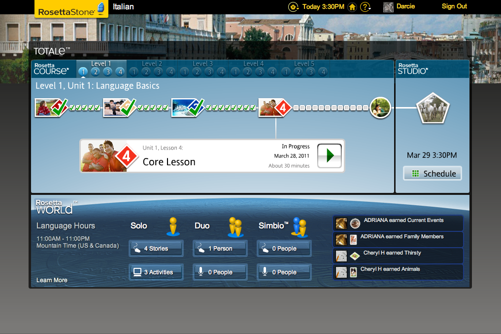 When I was looking into resources for Italian, it really struck me how much better language resources have gotten from the days of endless textbook exercises & verb conjugation drills. I always wanted to try out RosettaStone to see if it was worth the hype but always found it a bit pricey. Now they not only have the box sets you can buy (which are still pretty expensive) but they also have a program called Totale, a 3-month online program for $179.