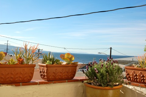 When I always used to think about dry climates, I would always think of muted barren desert plants, but when we lived in LA I was introduced to a whole new world of succelents that had a wide range of colors & textures. My husband planted a garden for us off our back balcony looking out over Palos Verdes & Catalina Island (and power lines).