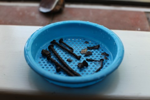 We didn’t get too far today with the actual digging but we did find a few scraps of rusted metal and some old, rusted nails (and lots of earthworms). We’re hoping to find the good stuff when we get further digging tomorrow.