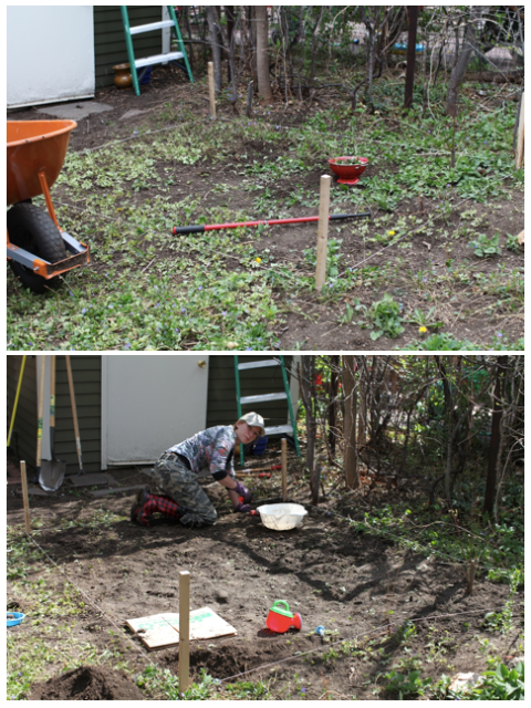 Today we just marked off a spot of 2 yards by 2 yards and spent a good part of the time cleaning out all the weeds and vines growing. (something I’m becoming somewhat of an expert at).