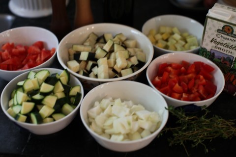 This weekend I did make a vegetarian dish that comes close to being able to replace my chicken and noodles which is saying a lot. I made ratatouille from my friend Pierre’s family recipe. It was unbelievable (he is French after all) and I have a feeling when the summer veggies are in full effect it will only be even better. Ratatouille, when made properly, is one of the best vegetarian dishes I’ve ever had. Thanks to Pierre for sharing his family’s recipe.