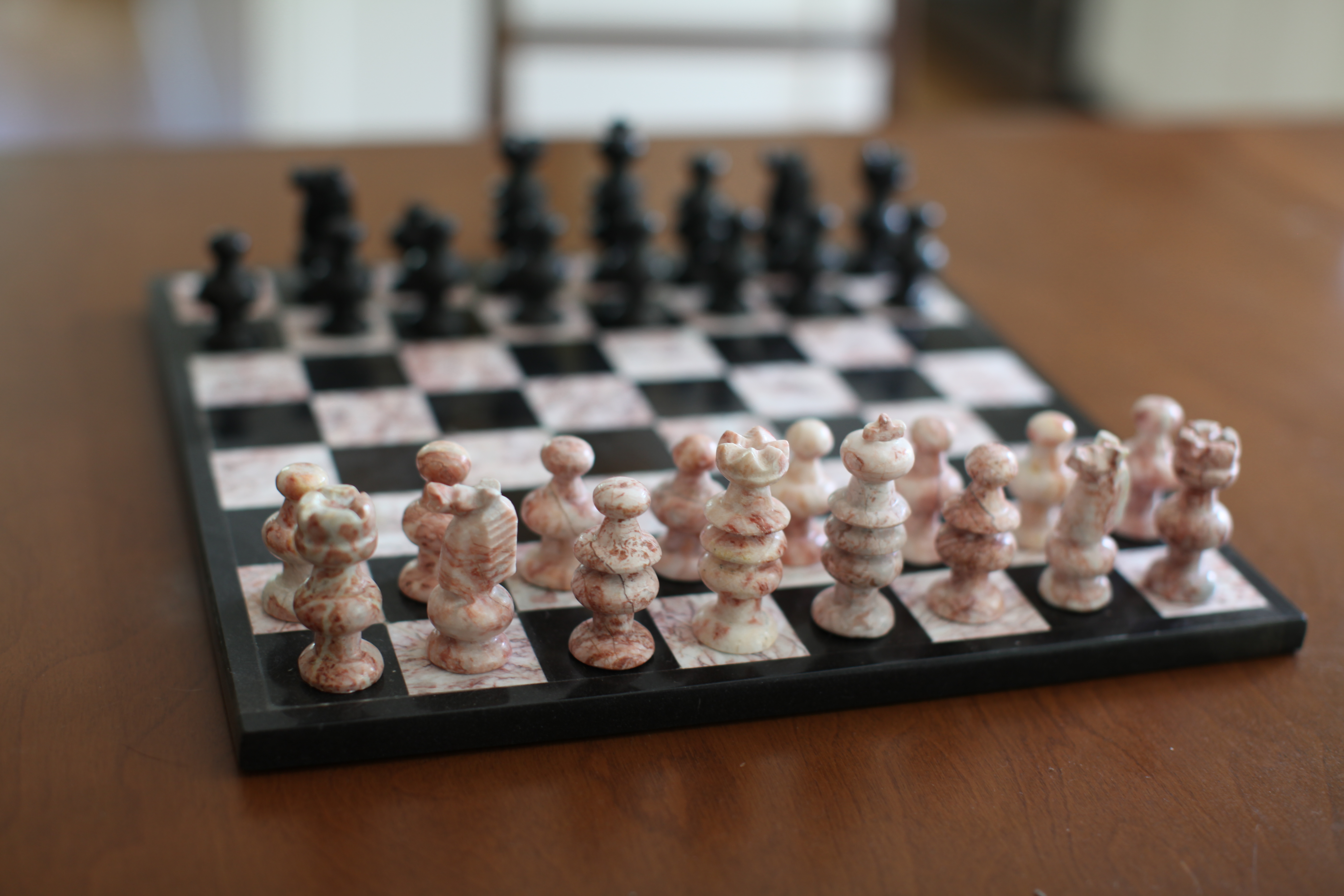 I bought this marble chess set 15 years ago when I was on a summer study program in Mexico. It was one of those spontaneous tourist purchases you find yourself lugging back and questioning afterward. I suppose I rationalized that everyone should own a chess set and I’d get around to learning one day. This set has seemed to follow me around over the years remaining un-played. I moved with it quite a few times and then conveniently left it in my old bedroom closet at my parents’ house.