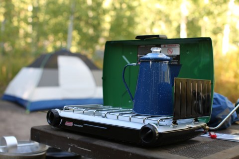 Overall, I’d say I was most prepared when it came to food. Green chili for dinner one night, bratwurst with peppers another along with a spinach & tomato salad. Cheese grits, sausage & bacon made a hearty breakfast. It makes all the difference in the world to be able to have a cup of good, hot coffee in the morning. We ended up buying a $60 Coleman stove and it is worth every penny.