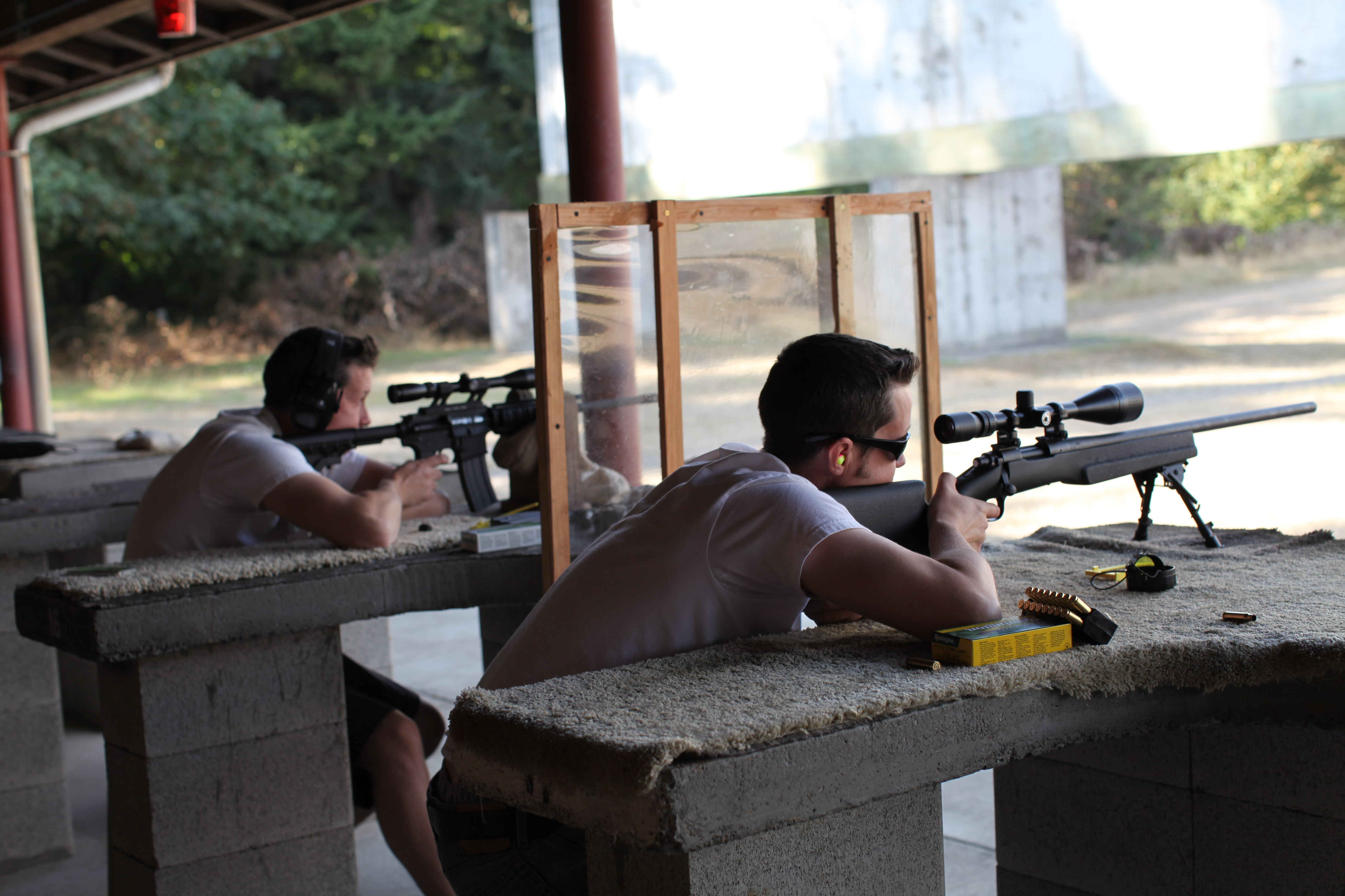We spent the weekend in Portland, OR where my husband is from and for my first shooting experience, I thought it would be fun to go with his twin brothers to the range. His brother, Gabe, is a member of the Tri-County Gun Club about a half hour outside of Portland. When I was setting out to shoot a gun for the first time this week I didn’t realize what was in store for me with John’s brothers. They have some serious guns. I shot a .40 caliber handgun, an AK-47, and AR-15 and a .308 rifle.