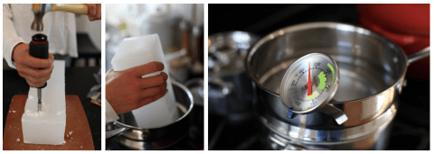 For my first foray into candle making I chose a couple of candle molds from my local hardware store, McGuckins. I bought a couple of different types of wax and dyes and for about 8 4″ candles I spent $85. Let’s just say candles are really not that economical to make. You can buy them for a lot less than it takes to make.