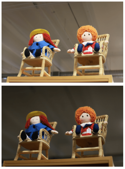 Below again I played with the background focus and darkened the exposure to focus in more on Raggedy Ann and Annie. It seems I caught them in the middle of something. I guess it would stand to reason they’d be close friends. Both are red headed, a little rough around the edges and started out poor before becoming famous. I think they were discussing Occupy Wall Street and their disdain for the 99% but I couldn’t be sure.
