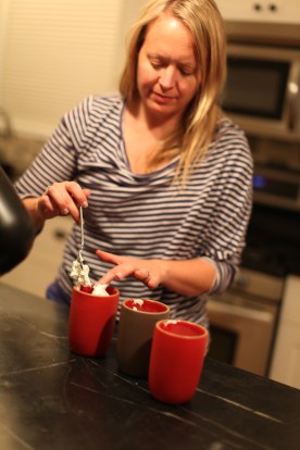 ot to burn the milk. I simmered it for a few more minutes and then poured the chocolate milk through a strainer into the mugs awaiting.