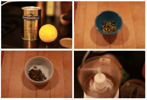 I’m a hot chocolate girl and last night it was needed with our -2 degree temperatures in Boulder. Instead of regular old cocoa, I decided to make a cardamom and orange cup of chocolate with cardamom whipped cream to enjoy with friends. A little fancier than the Aztecs would have done it but they didn’t have Cuisinarts and Kitchen Aid mixers.