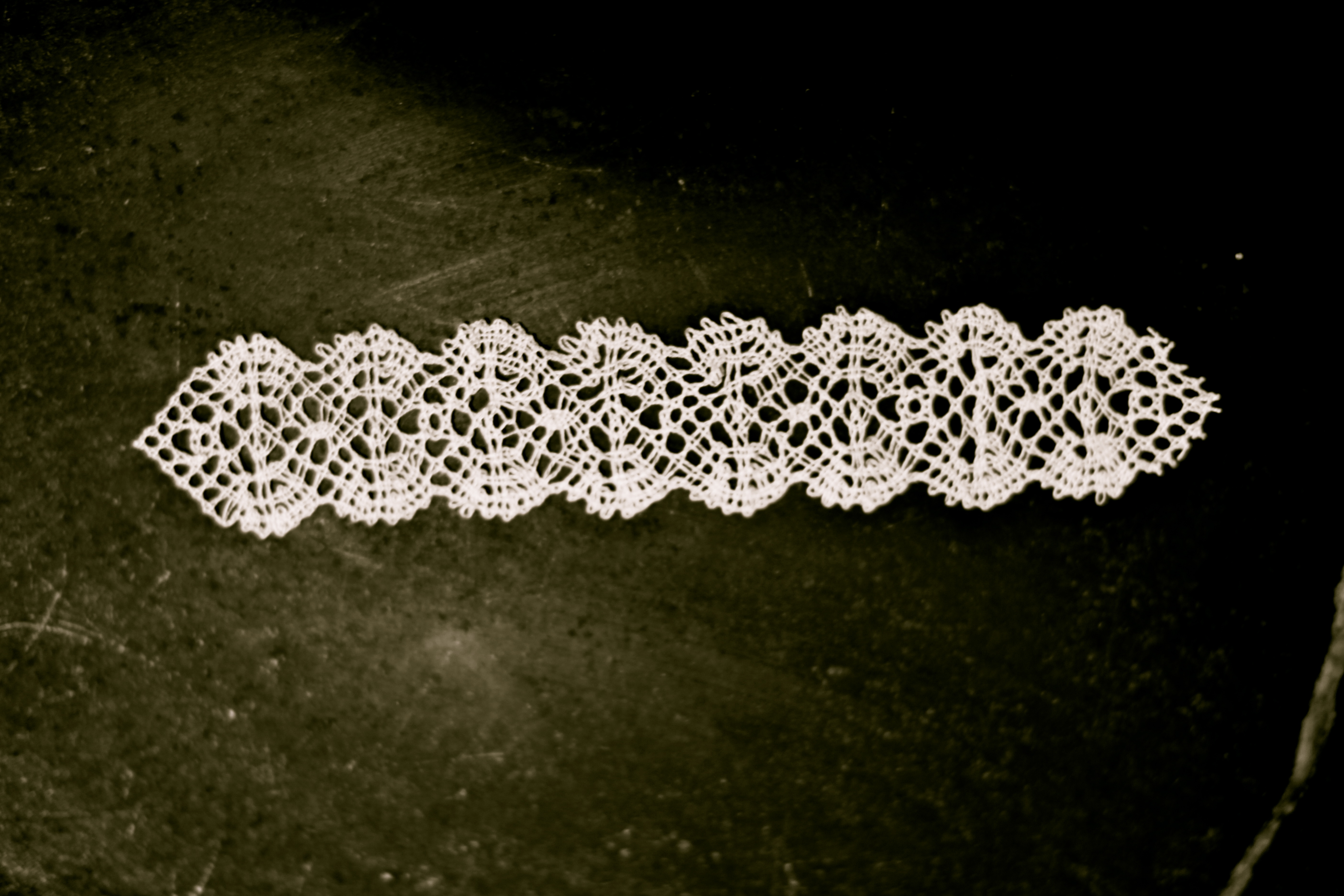 Despite the pain in my back and the strain in my eyes, there is something oddly fun about making lace. I like that you get immediate feedback as you’re working. You can see by how the pattern is forming. I like that you can go back and just fix mistakes; they’re not undoable. I felt a great sense of reward pulling out all of those awful pins and seeing what was underneath. I won’t be making Miuccia Prada’s next lace collection, but I did officially make lace and now have a much greater appreciation for it.