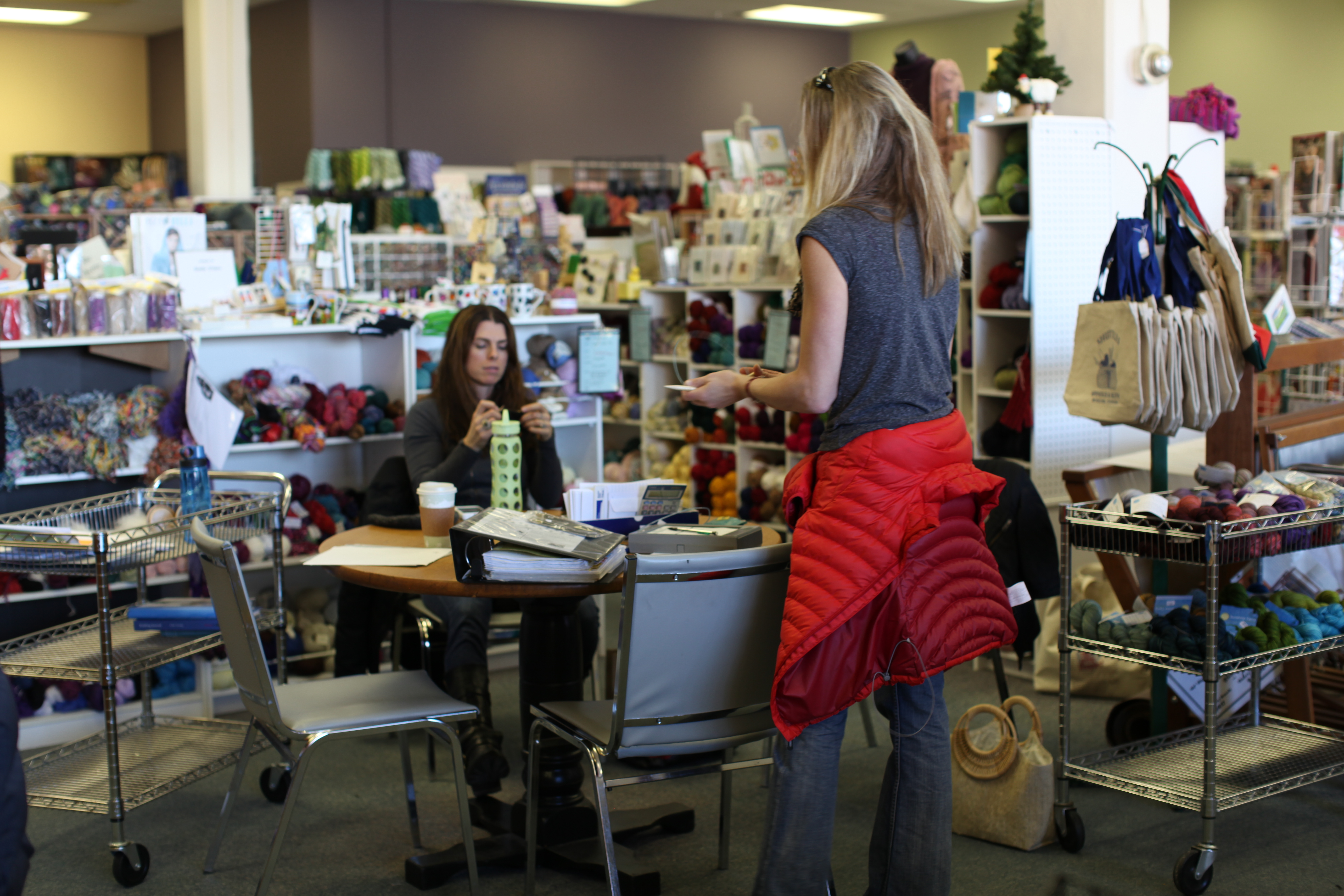 There are yarn stores and then there is Shuttles, Spindles and Skeins in Boulder. Out of all of the local places I’ve gotten to know this year, I can already tell this will be one of my favorites to visit. This week I had expectations of finding a store for supplies and then figuring it out on my own in front of a holiday movie or two. Instead I hung out and knitted in the store with the help of the gang of knowledgeable ladies who work there (many have degrees in fibers). They are a jovial gang who like to tease each other regularly. Margaret has a wonderful laugh. I even made a new friend in the process who I spent the week knitting with and getting to know better.