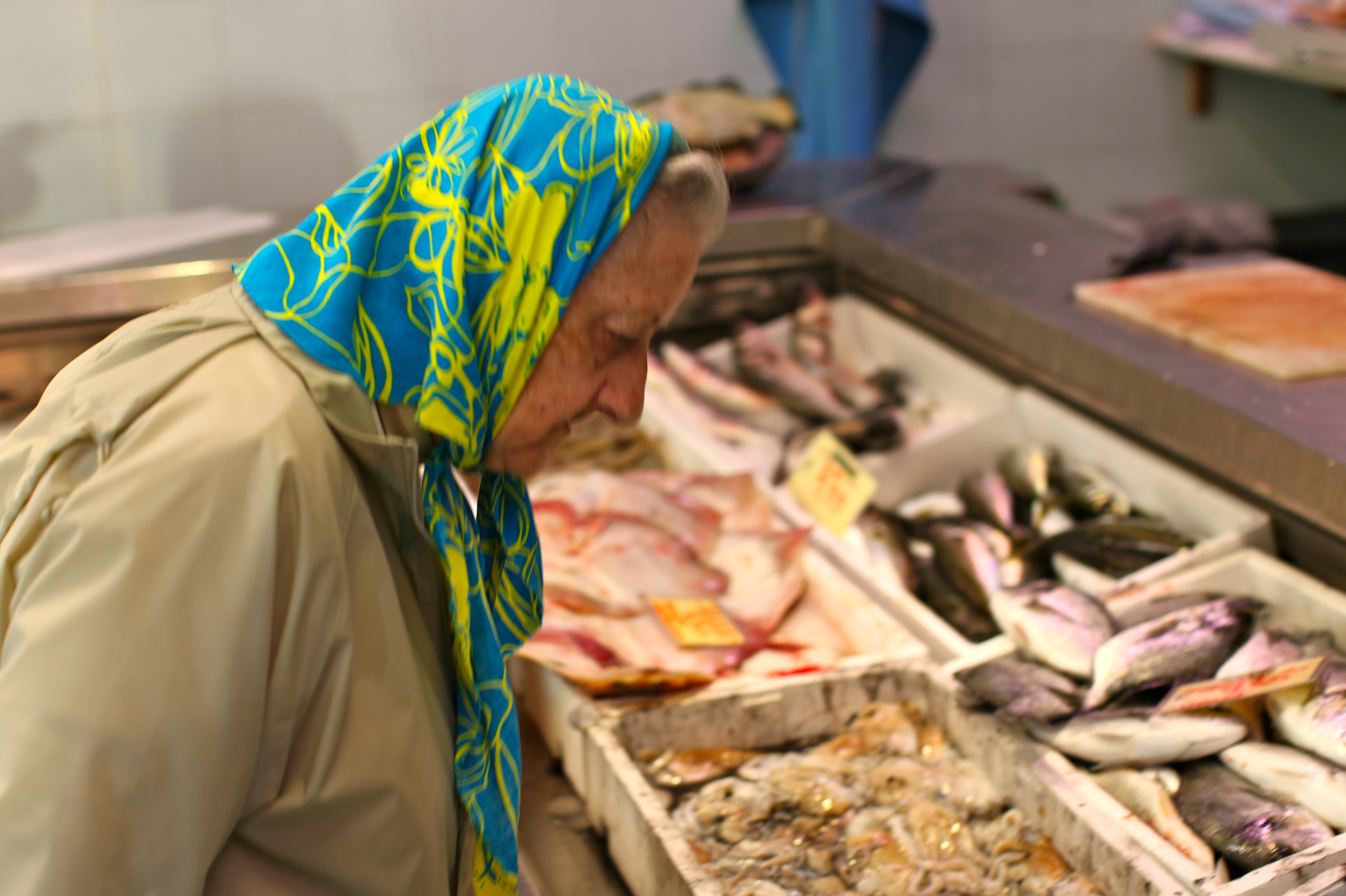 loved this woman checking out the fresh fish of the day. it will be hard to go back to colorado after stepping into this little fish market. so fresh.